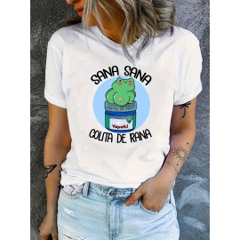 Graphic Print T-shirt, Short Sleeve Crew Neck Casual Top For Summer & Spring, Women's Clothing